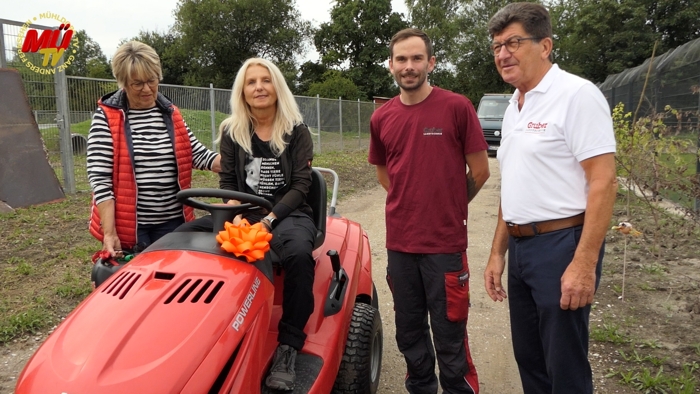 Gruber Landtechnik spendet dem Tierheim Waldkraiburg einen Aufsitzmäher im Wert von 1.800 Euro
